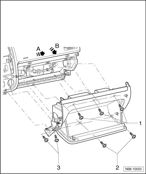- Remove the storage compartment or ashtray (Rabbit from MY 2009). Refer to => [ Storage Compartment or Ashtray, Rabbit from MY 2009 ].
