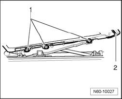 - Remove mounting bolts - 1 - on left and right sides.