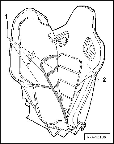 - Loosen all Velcro strips - 1 - on cover from depression in upholstery - 2 -.