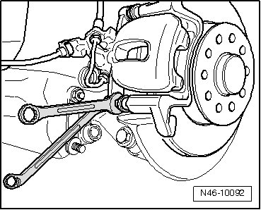 • For pistons that are difficult to press in, a 13 mm open end wrench can be used at the location - arrow A - on the resetting & extracting tool ( T 10165 ).