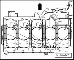 From the factory, the upper bearing shells are allocated to the cylinder block with the correct thickness. Colored spots serve to identify the bearing thicknesses.