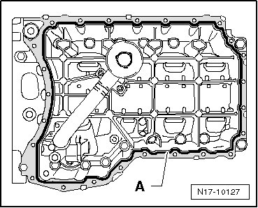 - With engine removed, apply sealant bead - A - as depicted on to clean sealing surface of upper section of oil pan.