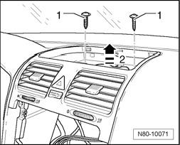 - Remove center air vent -2- upward in direction of -arrow-.