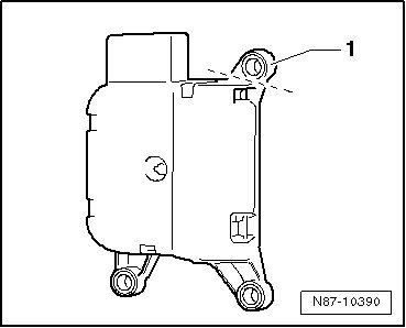 - Remove the mount - 1 - from the old temperature regulator door motor (V68) using, for example, a diagonal cutter.