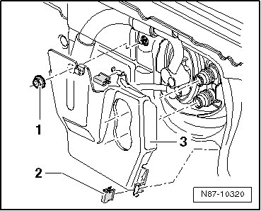 - Loosen clips - 2 - and remove shielding plate - 3 -.