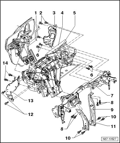- Remove the bolts - 12 - and - 14 - and the bracket - 13 -.