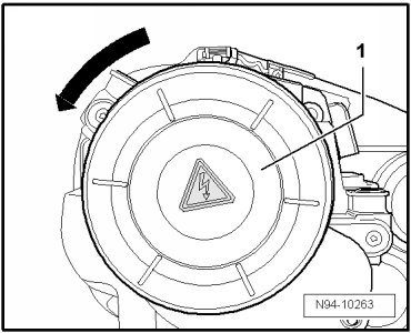 - Rotate cover cap - 1 - in - direction of arrow - and remove it.