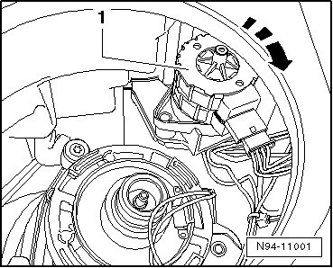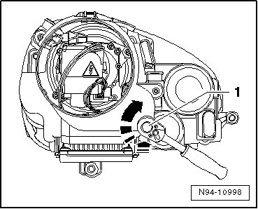 - Lower low beam reflector again, raise adjusting motor - 1 - slightly and rotate in - direction of arrow -.
