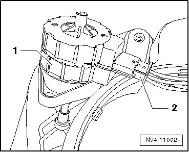 - Disconnect connector - 2 - and remove adjusting motor - 1 -.