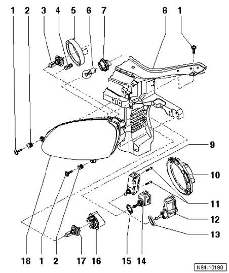NOTE: For the first removal of Left Headlamp Beam Adjustment Motor V48 and Right Headlamp Beam Adjustment Motor V49 requires a repair set Parts Catalog (ETKA)