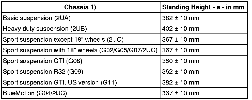 Tightening of the respective bolts/nuts must then only occur after dimension - a - between the wheel hub center and the lower edge of wheel housing has been attained.