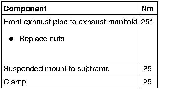 - Remove the front exhaust pipe nuts - 2 - from the manifold and the suspended mount bolts - 3 -.