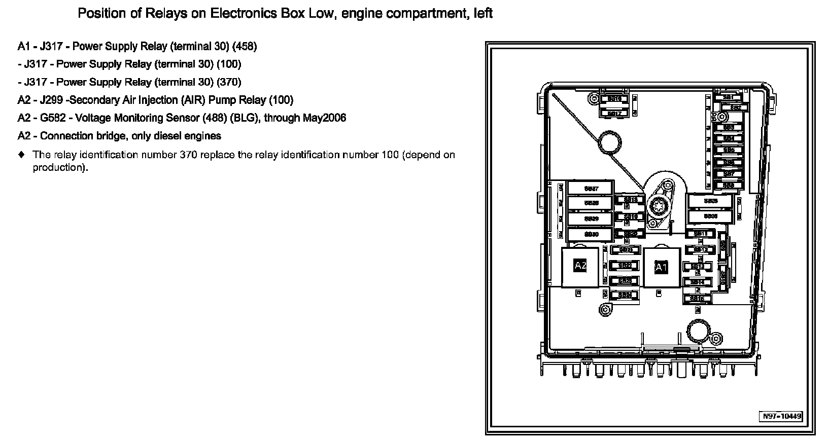 Position Of Relays On Electrical Box Low, Engine Compartment, left: