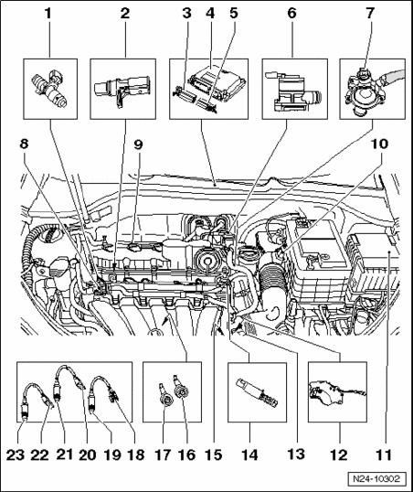 9 - Ignition coil with power output stage N70, N127, N291, N292, N323