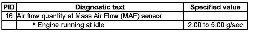 - Select measuring value "PID 16: Air stream amount at Mass Air Flow (MAF) sensor".