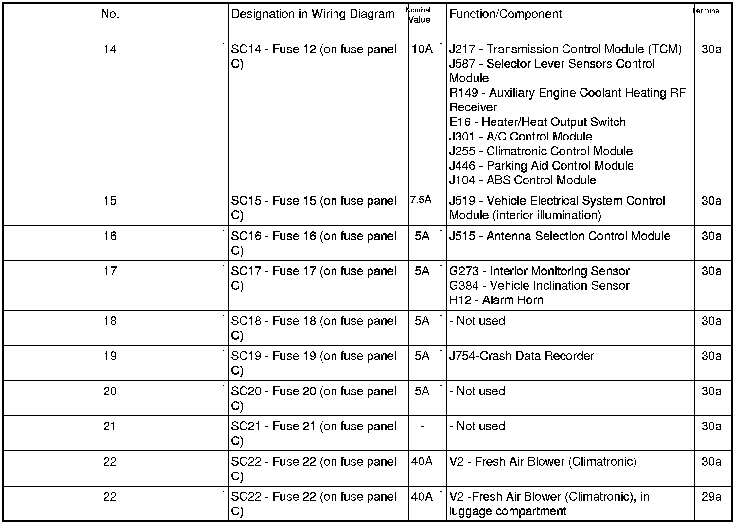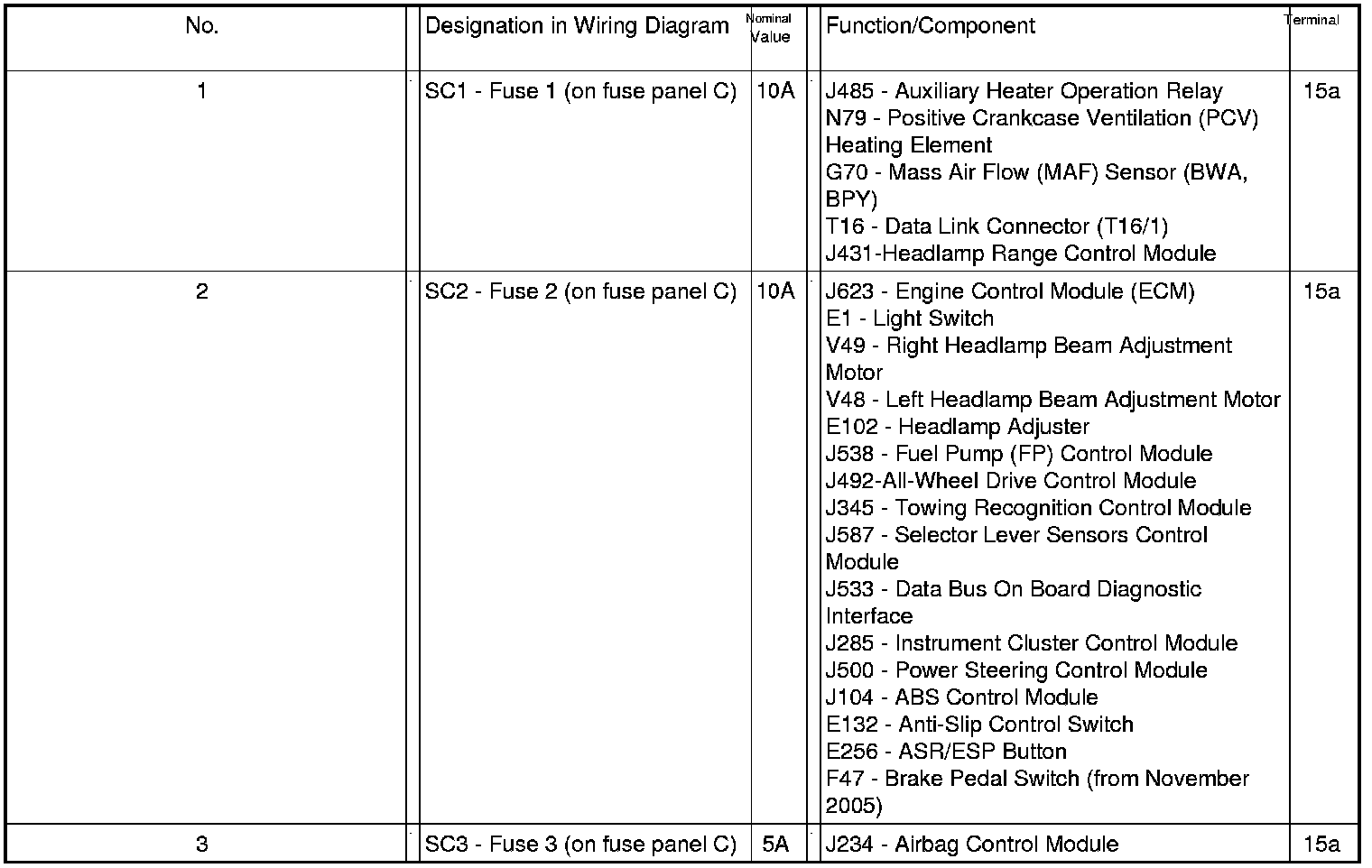 Fuse Arrangements Electronics Box High, From November 2005