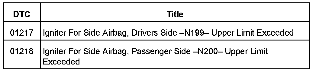 Igniter, Side Airbag, Diagnostic Trouble Code(s) Stored in DTC Memory