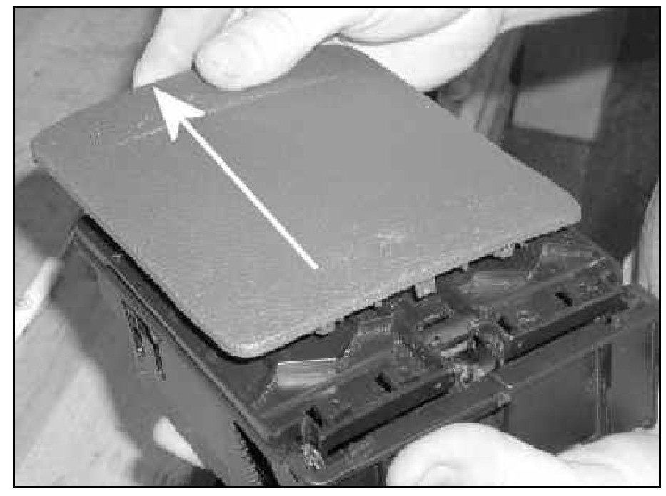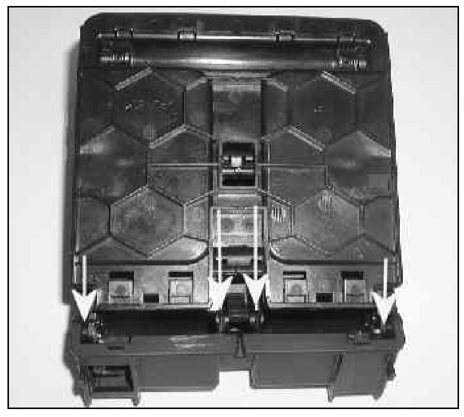 - Using a small screw driver where indicated -arrows- as necessary, release cover from tray.
