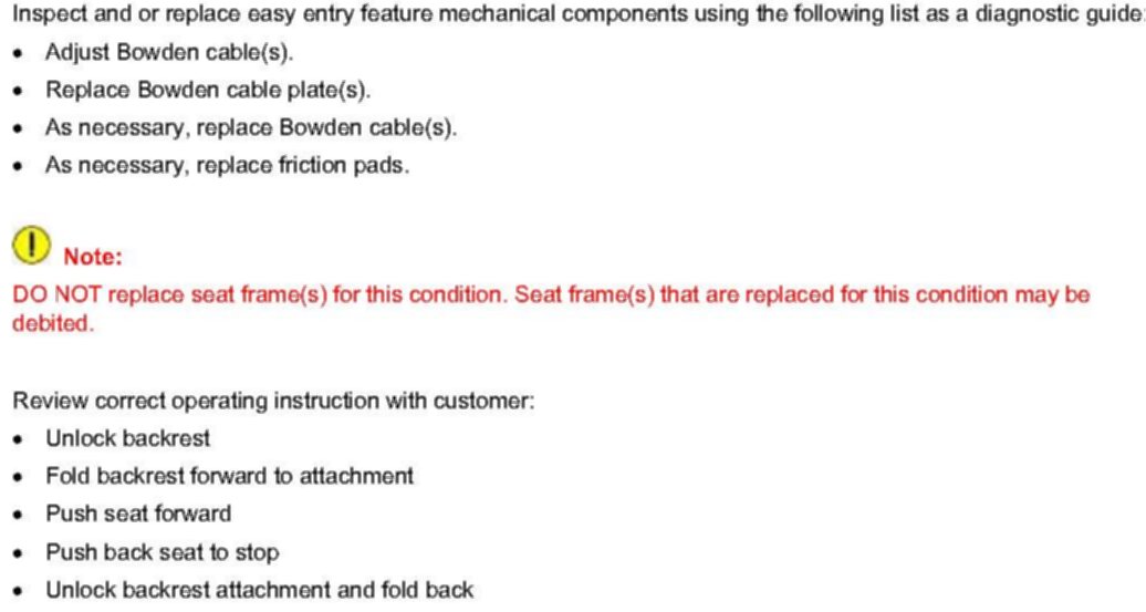 Seat, Easy Entry Feature Inoperative, 2 Door Models ONLY