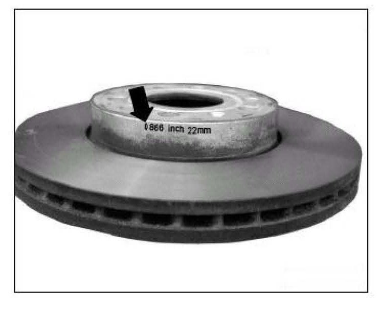 Each brake disc has the minimum allowed thickness cast, stamped or laser-etched into the disc hub.