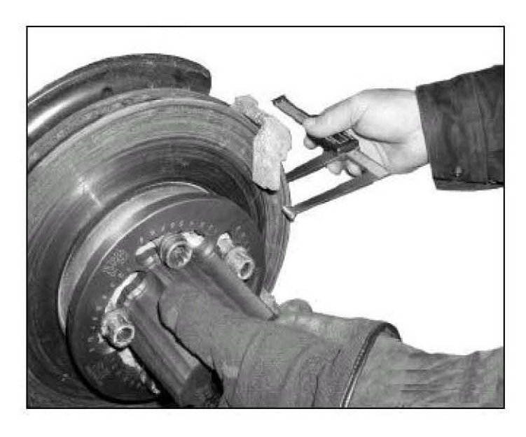 ^ Re-measure brake disc thickness in 4 locations using either the Pro Cut disc thickness measuring tool Part No. 50-902 or the Hunter disc