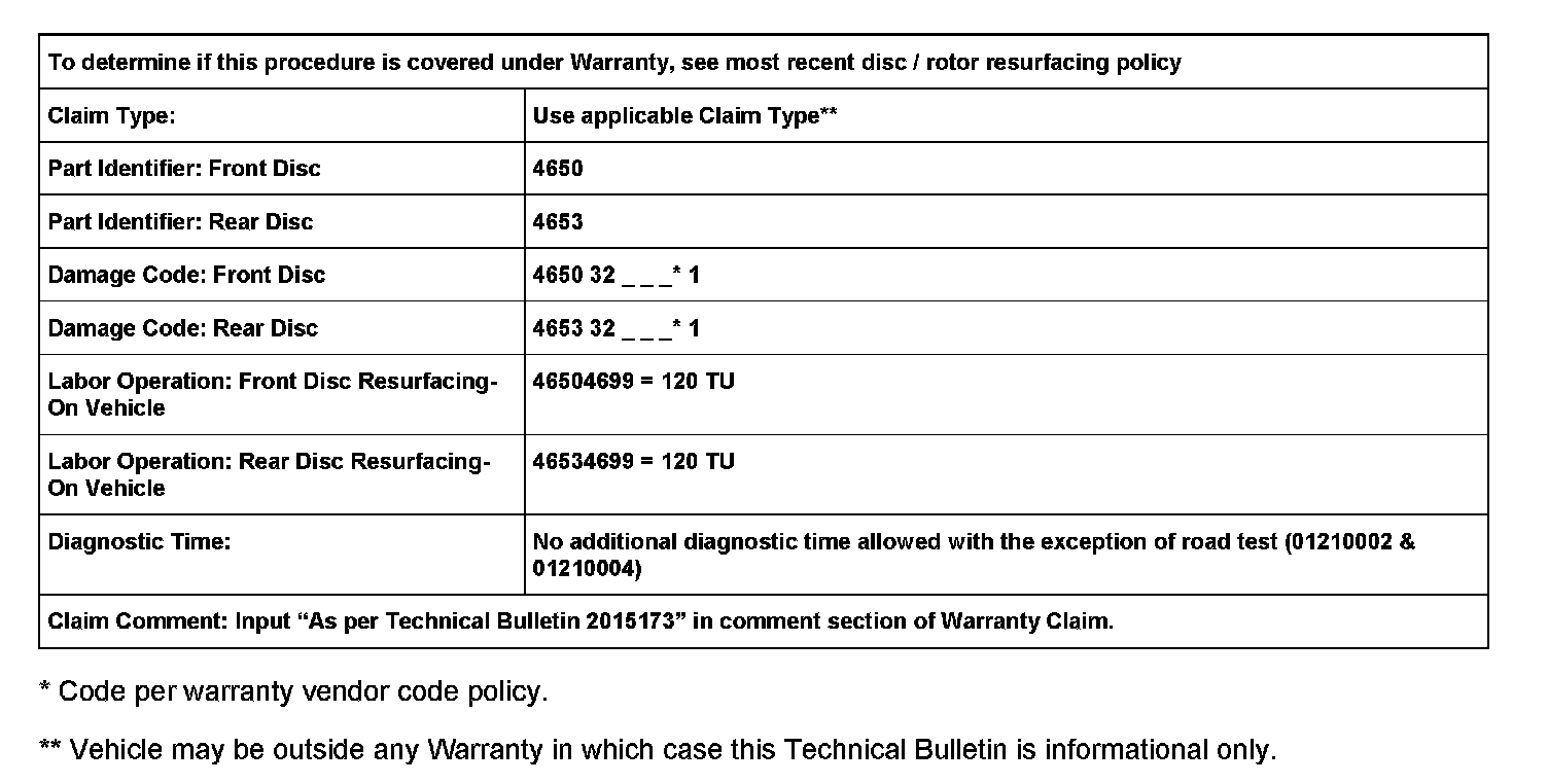 For brake vibration / pulsation concerns, brake disc machining is now allowed between 6 months / 6000 miles and 12 months / 12,000 miles of the warranty in service date.