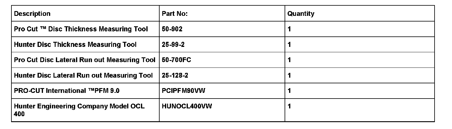 measuring kit Part No. 50-700FC or the Hunter Disc Lateral run out