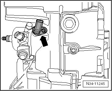 - Transmission on vehicles with a stop/start system: install the transmission neutral position sensor - arrow - and tighten the bolt, see - item 11 - in => [ Transmission Housing and Shift Mechanism ] Transmission Component Overviews to specification.