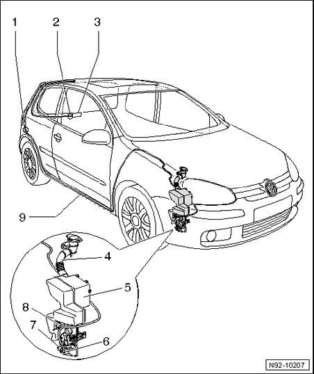 - Connection to Windshield and Rear Window Washer Pump V59