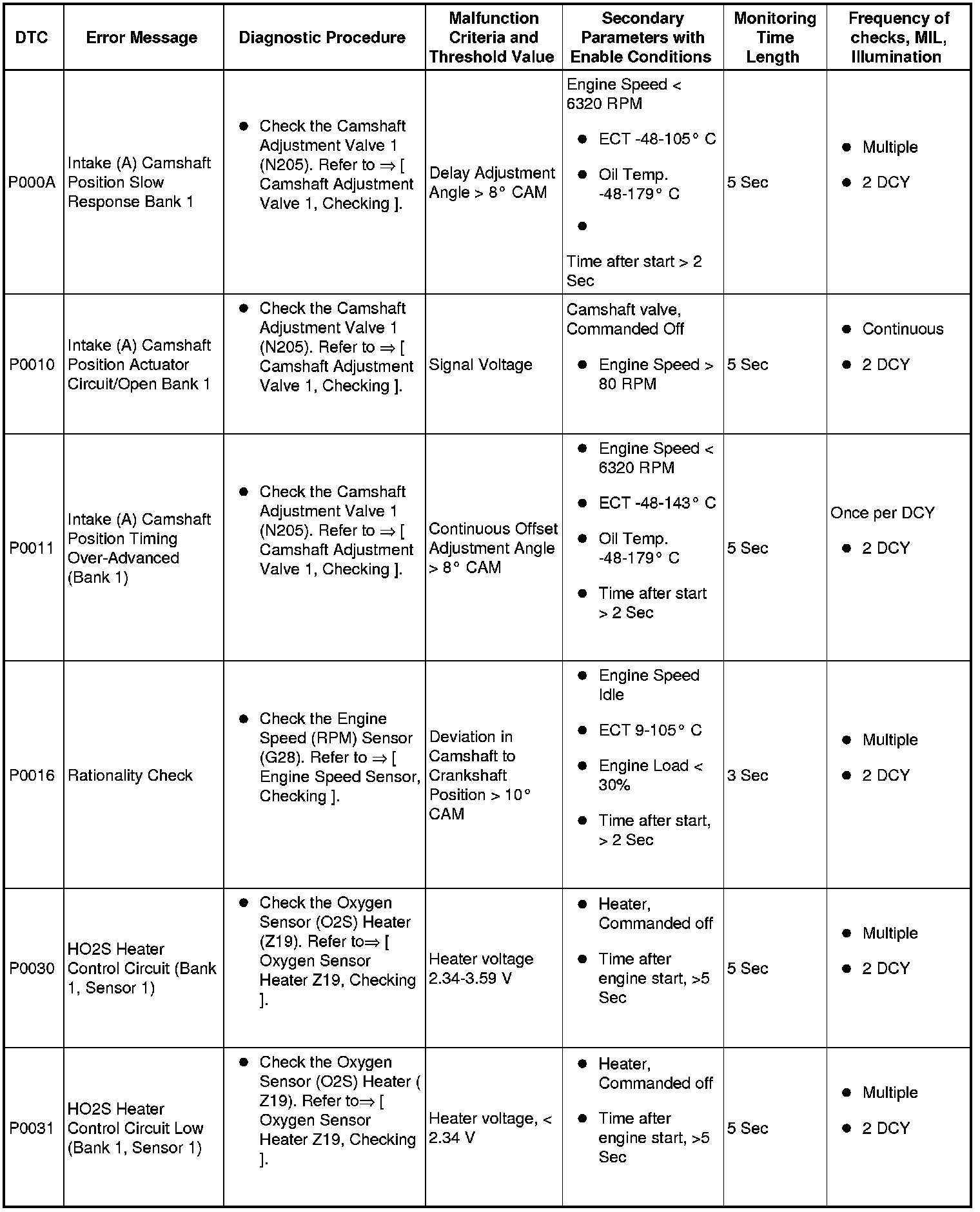 For additional monitor strategy information. Refer to the => Bosch Motronic MED 7.1.1 OBD System Strategy document.