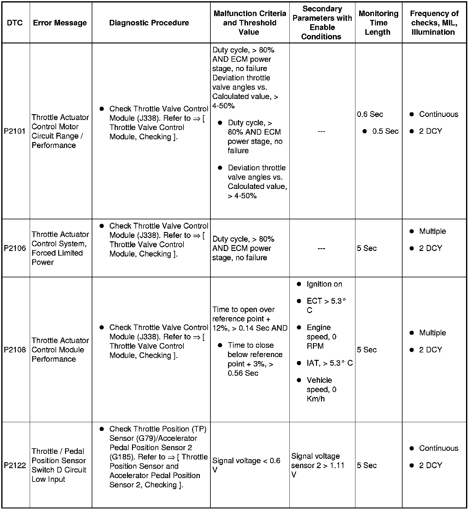 For additional monitor strategy information. Refer to the => Bosch Motronic MED 7.1.1 OBD System Strategy document.