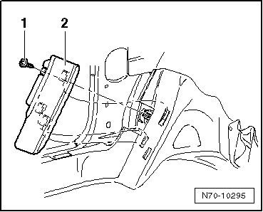 - Remove bolt - 1 - (1.5 Nm) and pull support cover - 2 - upward out of mounts in floor panel.