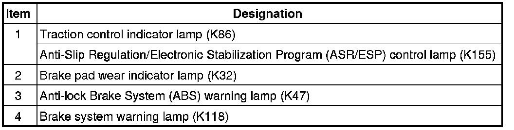 ABS Warning Lamp (K47) and Brake System Warning Lamp (K118)