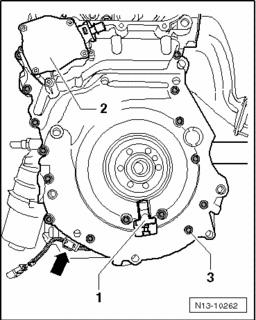 - First tighten all bolts - 3 - in cylinder block and in upper section of oil pan to 10 Nm.