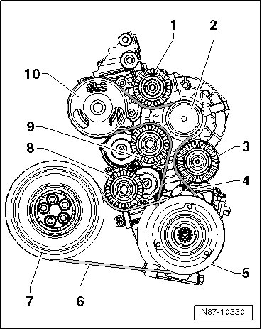 8. Tensioning roller for ribbed belt - A/C compressor