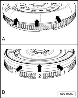 - The outer contour of the flywheel can also be inspected by removing small cover plate - A -