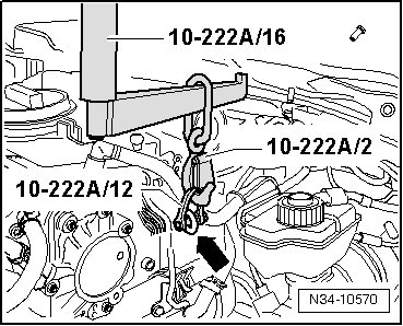 - Attach the hook (10 - 222 A/10) to the engine at the front right side.