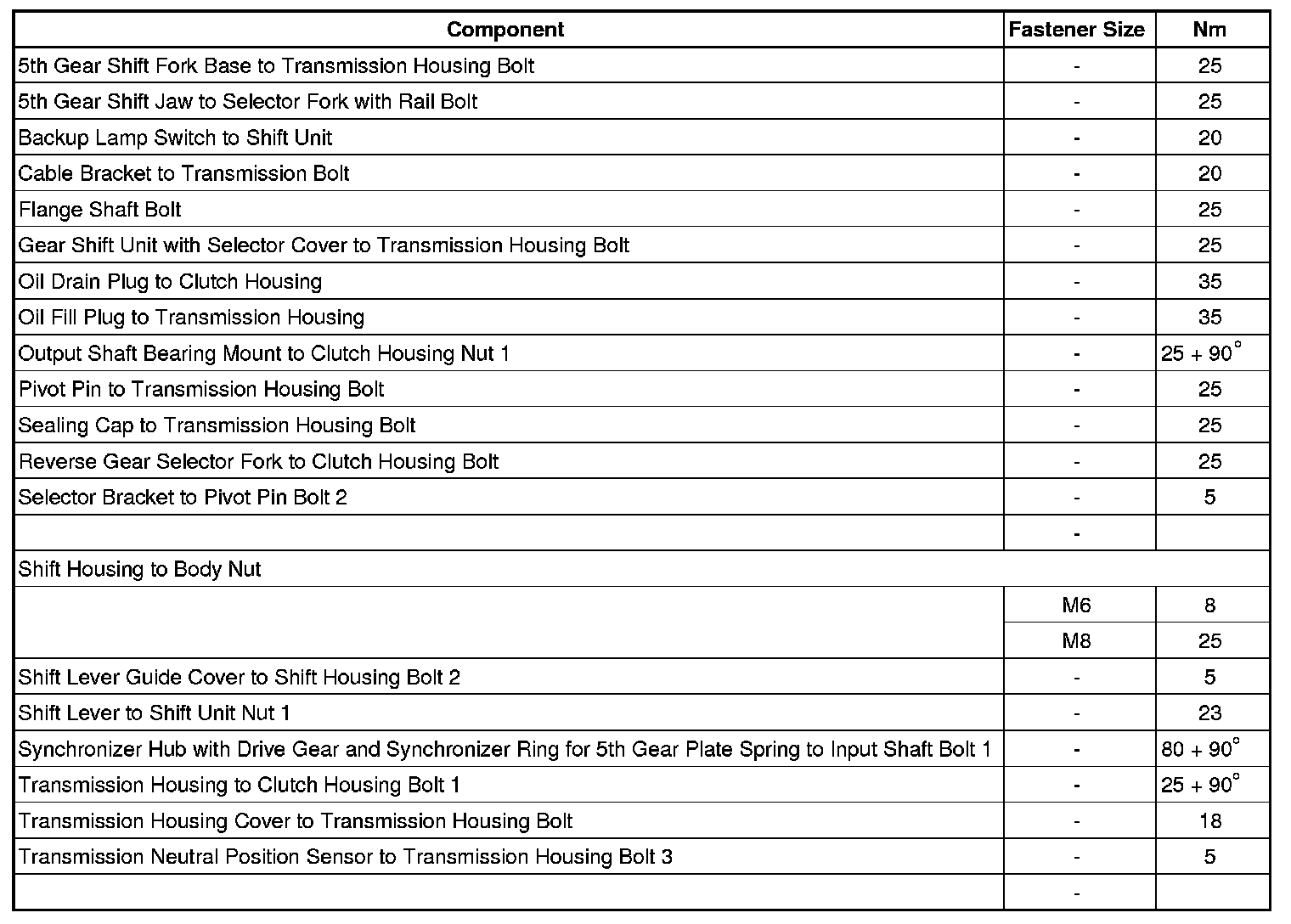 Golf, from MY 2010 - Transmission to Engine Bolt Tightening Specifications