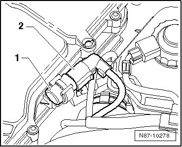 - Disconnect the connector - 2 - and unclip the Headliner Interior Temperature Sensor (G86) - 1 - from the bracket on the E-box.