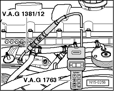 - Check compression pressure using the compression tester (VAG 1763).