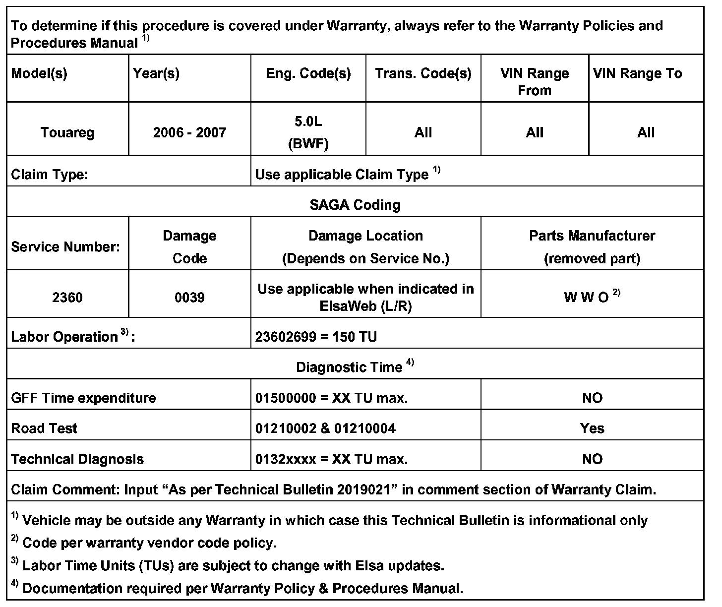 NOTE: An Update Programming procedure (flash) may overwrite any "TUNED" ECM or TCM programming. A "TUNED" ECM or TCM is described as any ECM or TCM altered so as to perform outside the normal parameters and specifications approved by Volkswagen Group of America.