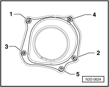 - of coolant pump to 20 Nm + 1/4 turn (90°).