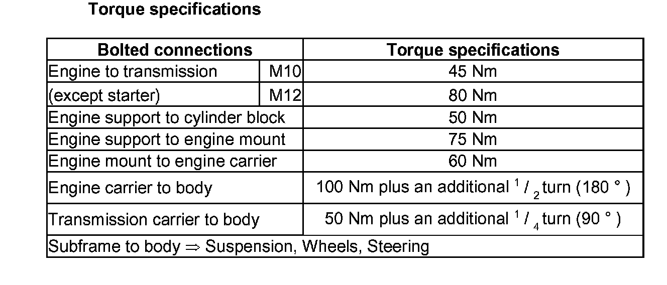 Torque specifications: