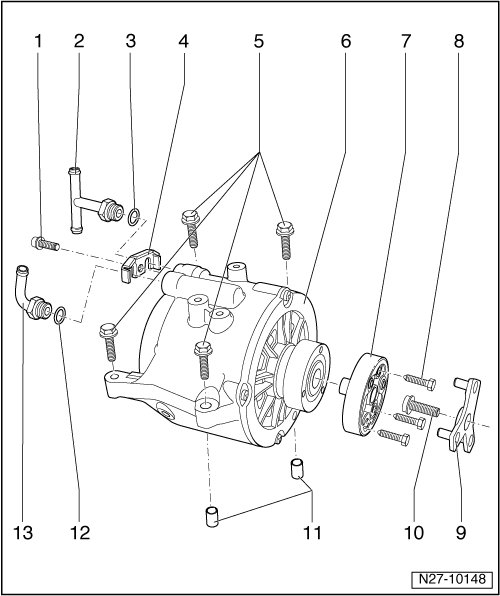 • Generator, removing and installing --> [ Generator with Hard Rubber Disc Clutch ] Generator