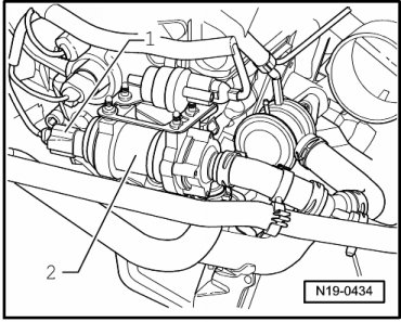 - Disconnect 2-pin connector - 1 - from Coolant Pump (V36) (- 2 -).