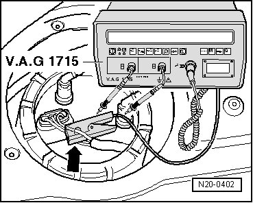 - Connect remote control for VAG 1348 (V.A.G 1348/3A) with adapter cable (V.A.G 1348/3-3) to connection - arrow - for fuel pump relay for left fuel delivery unit.