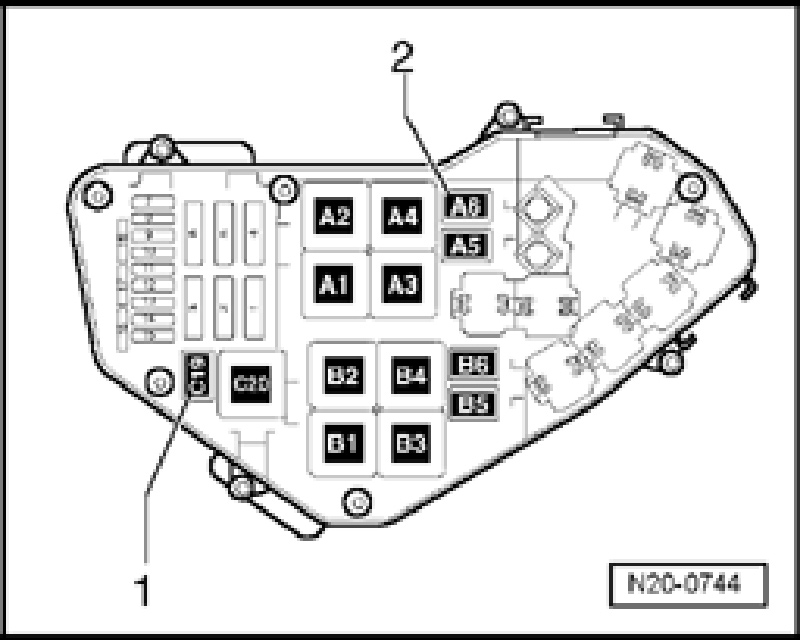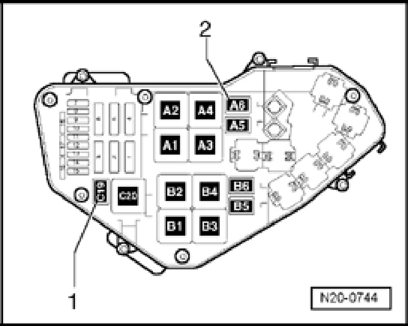 - Remove Fuel Pump (FP) 2 Relay -J49-, right, from relay carrier, position C19.