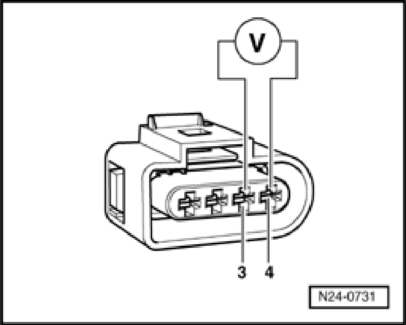 - Connect multimeter to terminals 3 + 4 of connector for voltage measurement.