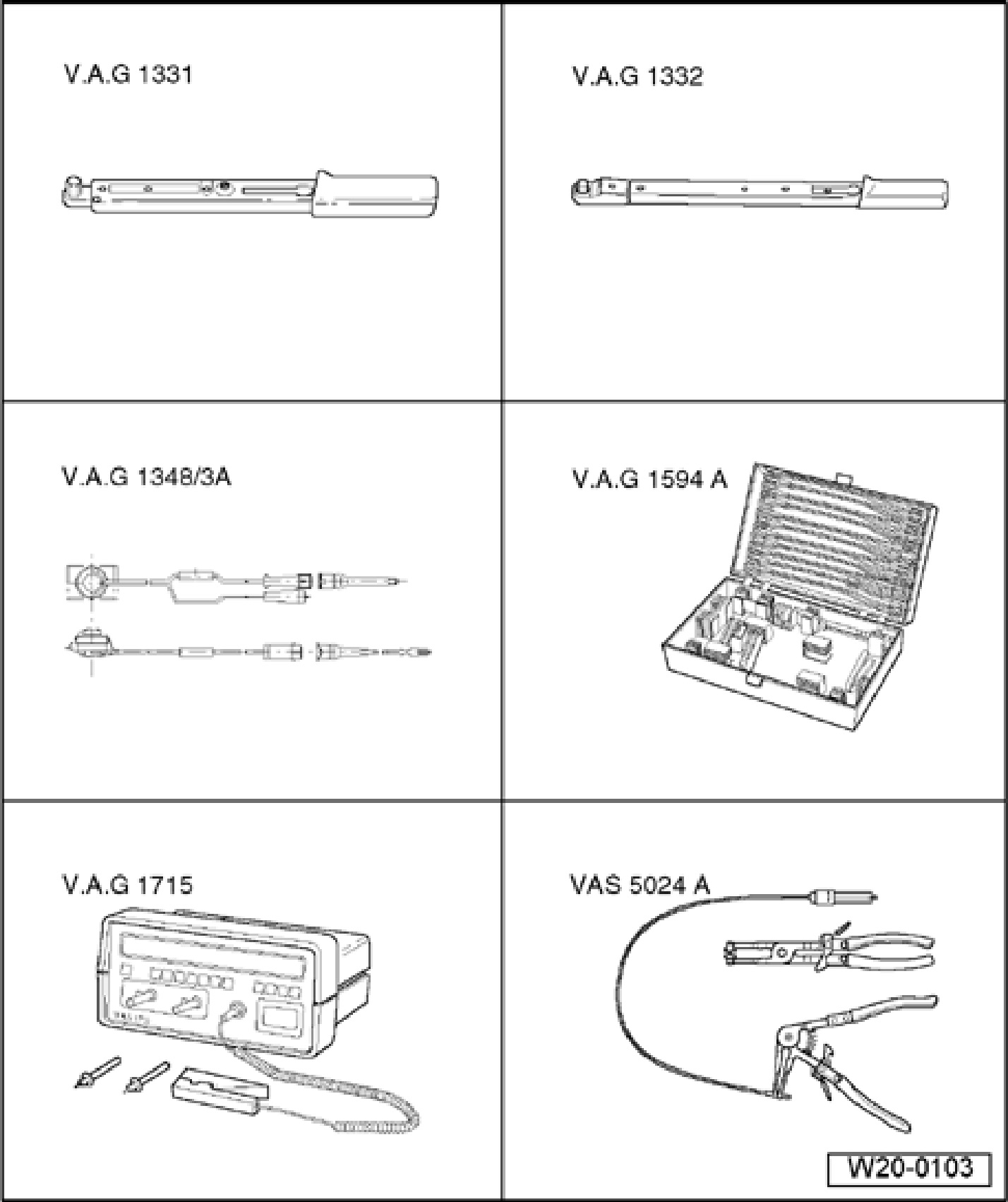 - V.A.G1526 multimeter or V.A.G1715 multimeter