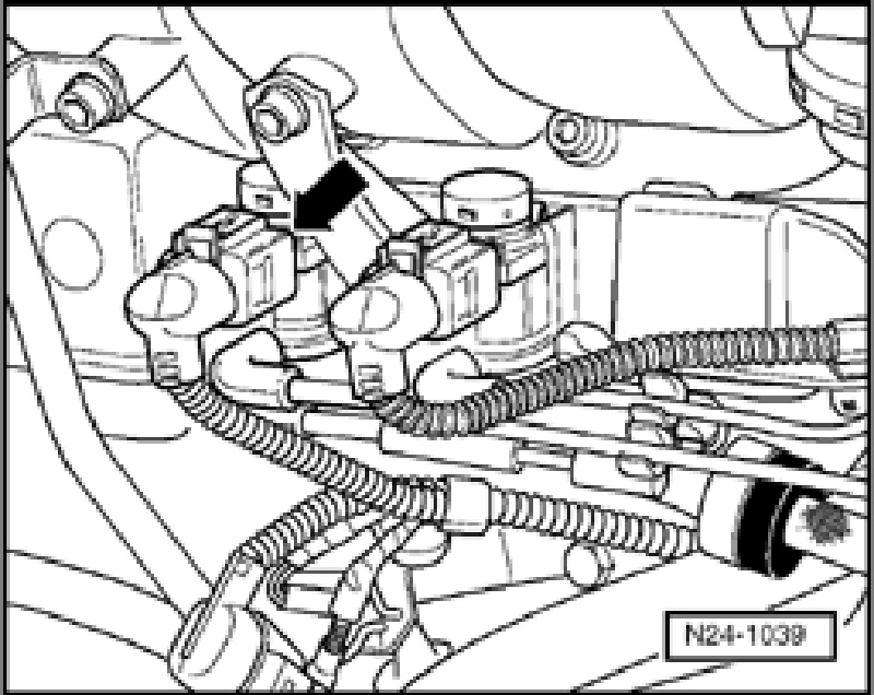 - Disconnect 2-pin connector from Secondary Air Injection (AIR) Solenoid Valve -N112- arrow).